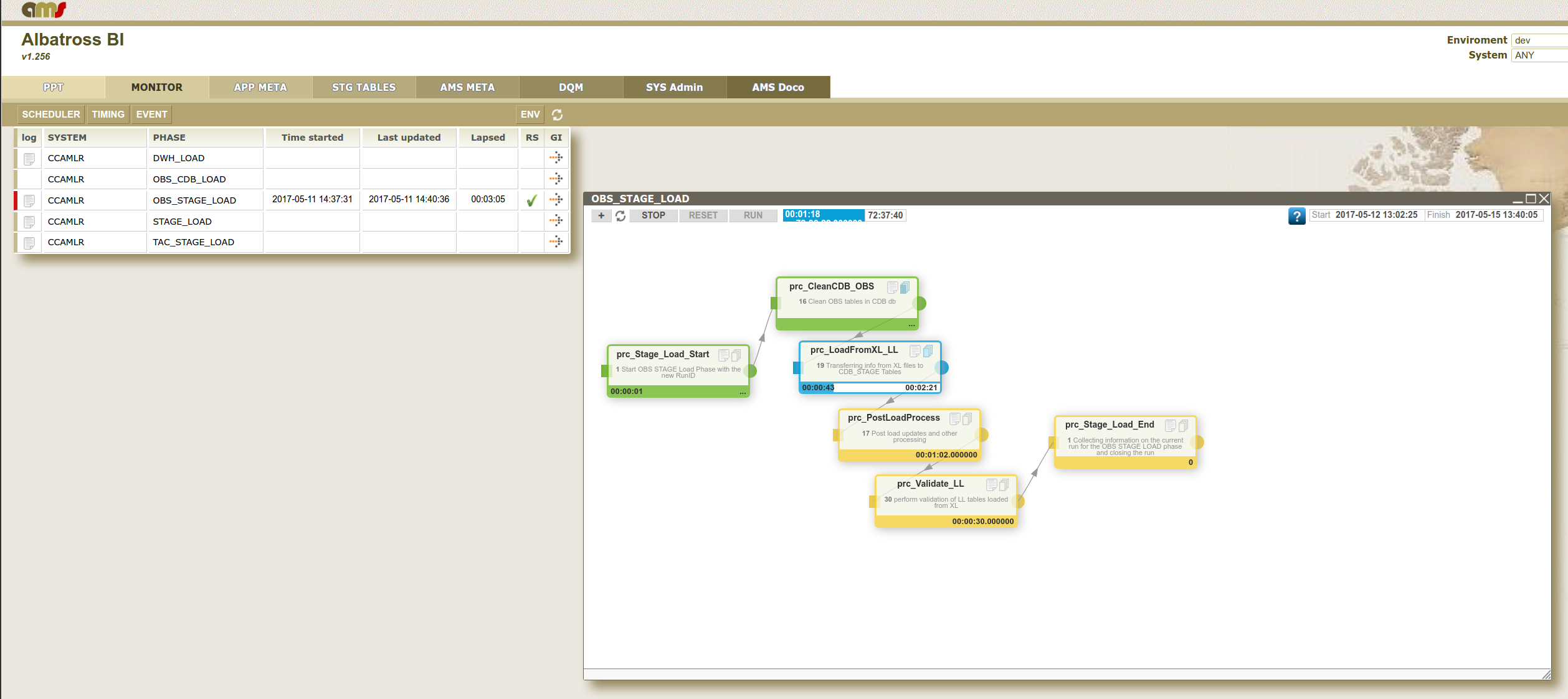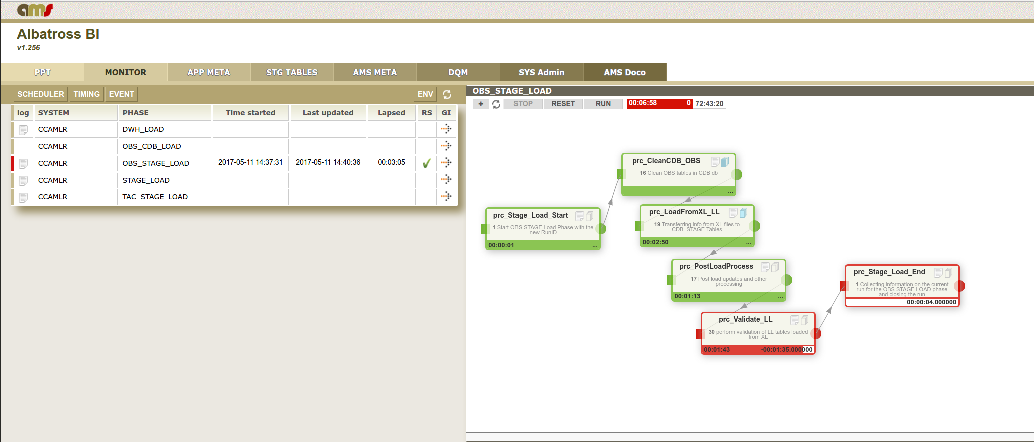 MONITOR - Monitor provides a wide range of capabilities that are essential to daily operations in production environment, or providing practical support in development environment. These include job/phase scheduling, monitoring, alerting – and performing phase level actions such as starting, stopping, and rerunning. Across all applications/systems, the Operational Console collects, integrates, and manages the associated operational metadata, helping the operational team and business analysts in planning and maintaining efficient operations.
